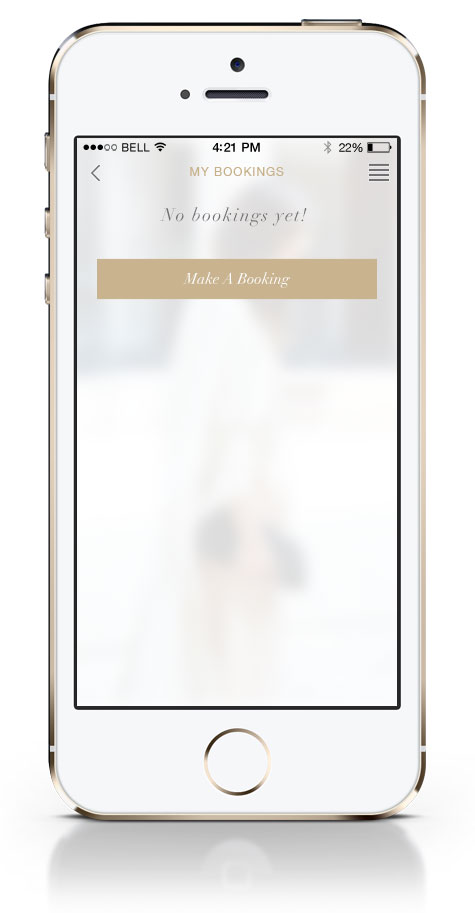 • Core functions of the app to be the only 2 buttons: ‘Lookbook’ & ‘Book’
