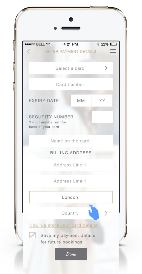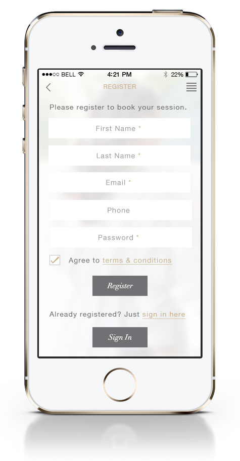 Most users would be new so we took them straight from the confirm booking to registration. If the user was already running the app they’d be signed in automatically and if a minority had signed out there was a link to sign in again. Salon bookings did not require card details but home books required payment details to book.