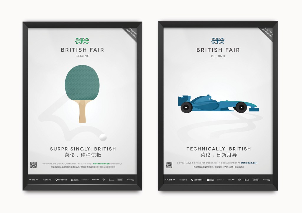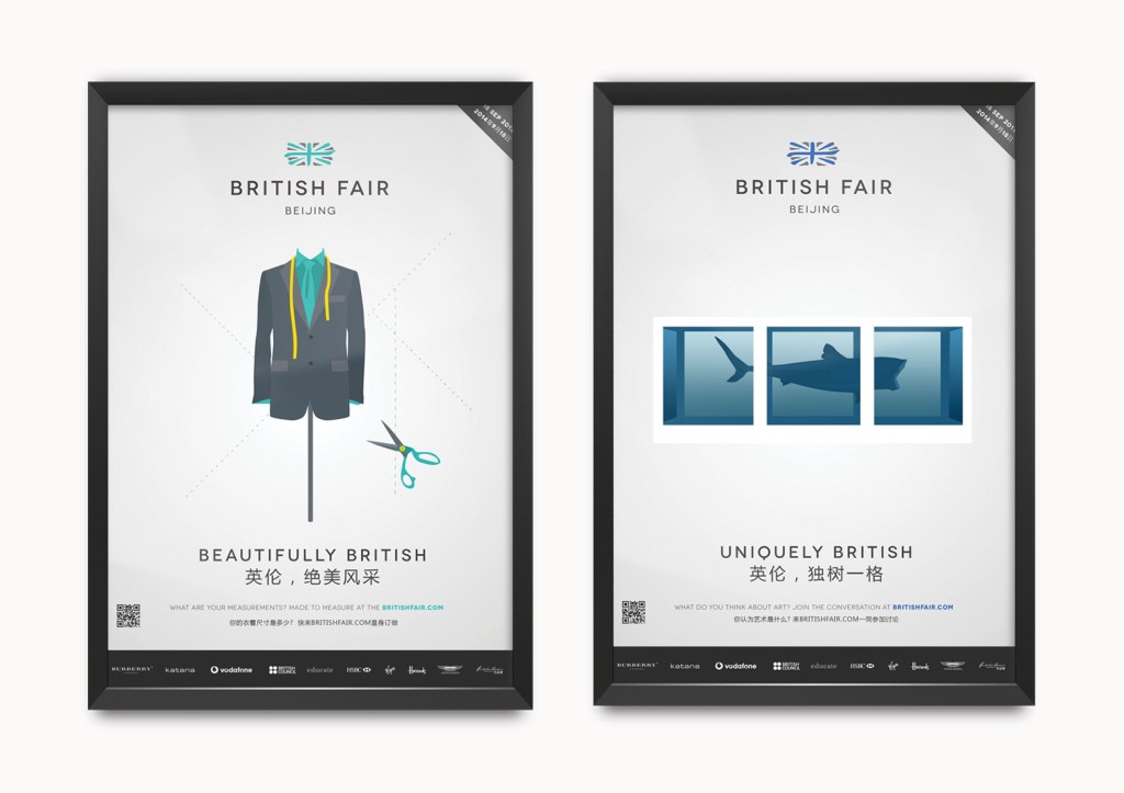The campaign adverts were designed to promote the best of British brands to the public in China food, fashion, art, lifestyle, technology & sports brands in a cleaver, eye-catching way that would stand out from the slew of photography style, cluttered and typographic adverts in the China market.