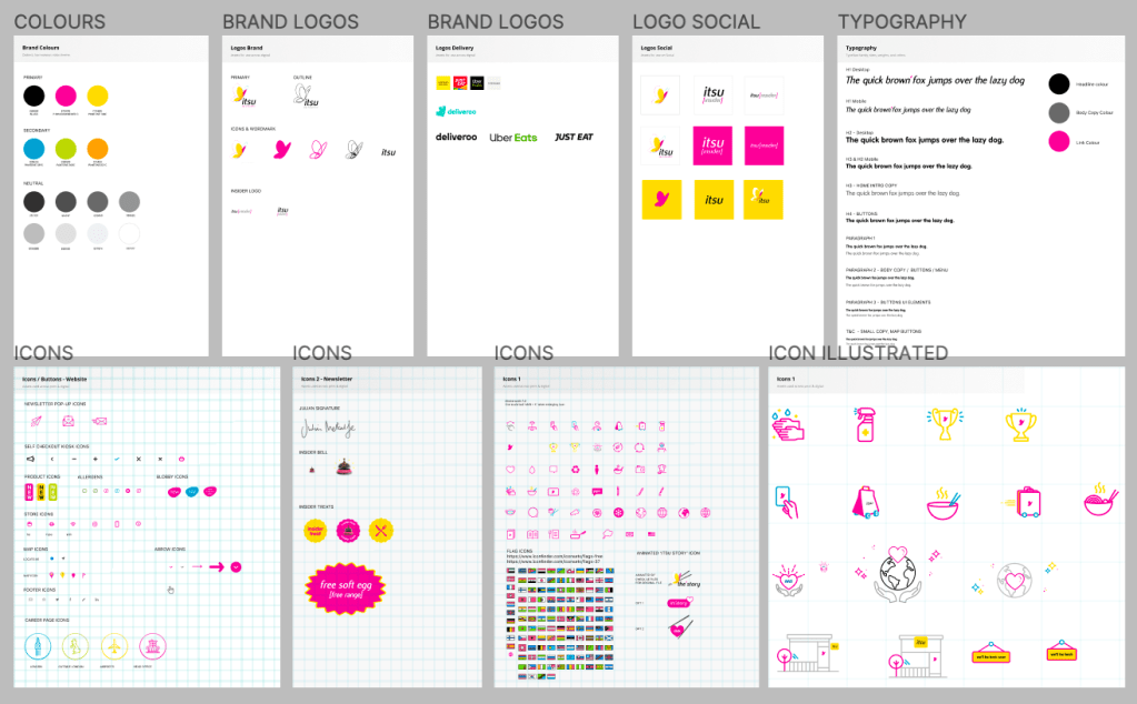 I built and organised a Itsu digital brand library and UI component library in Figma to maintain brand consistency across projects as well as to make it easier for multiple designers across Itsu Grocery & Itsu Retail to collaborate across different digital projects (Kiosk, App, Web, Social, Print)