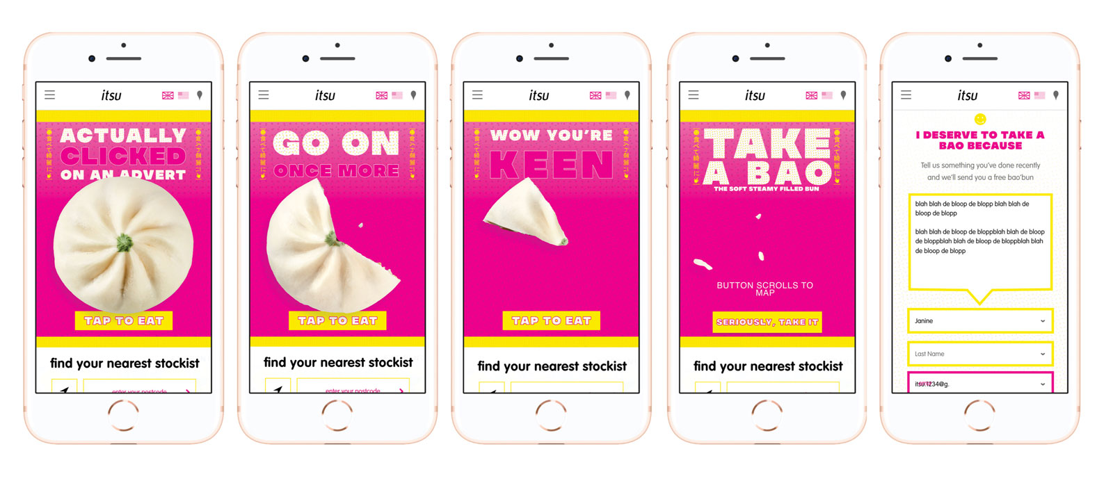 - Created an interactive campaign microsite for the launch of Itsu’s bao buns.