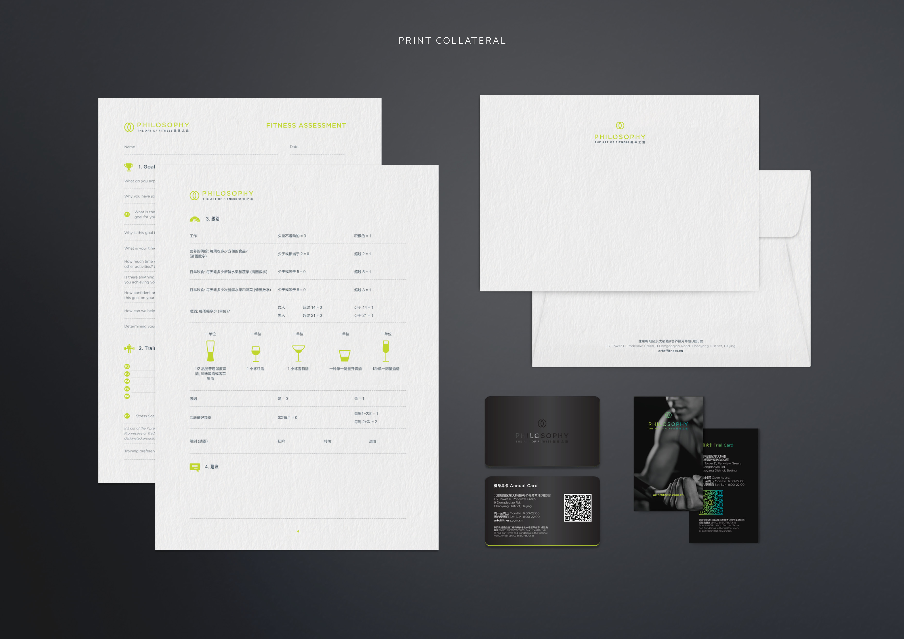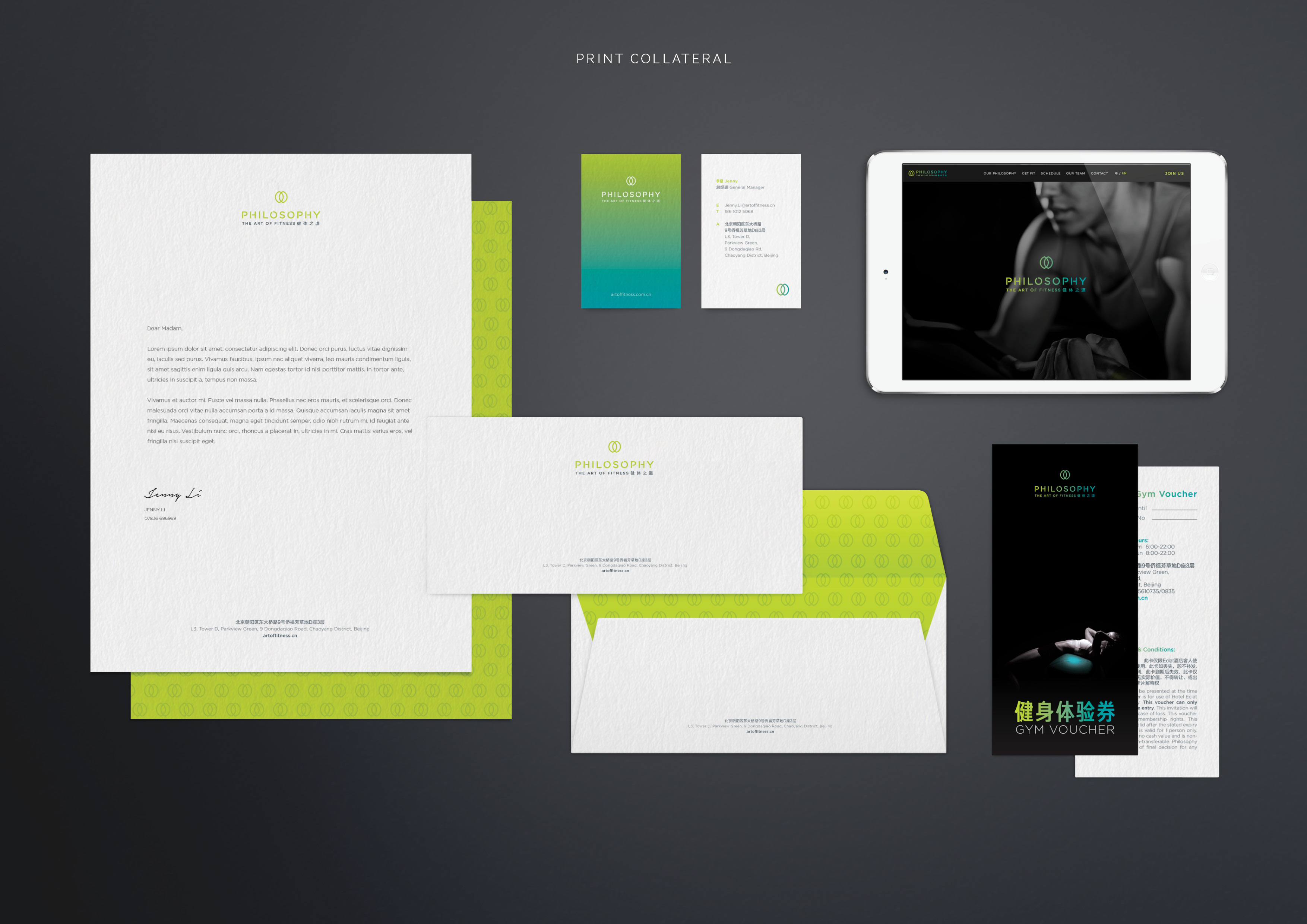 The icon of the identity was based on the philosophy of ‘mind and body’, with Philosophy gym represented by the intersection of the two.