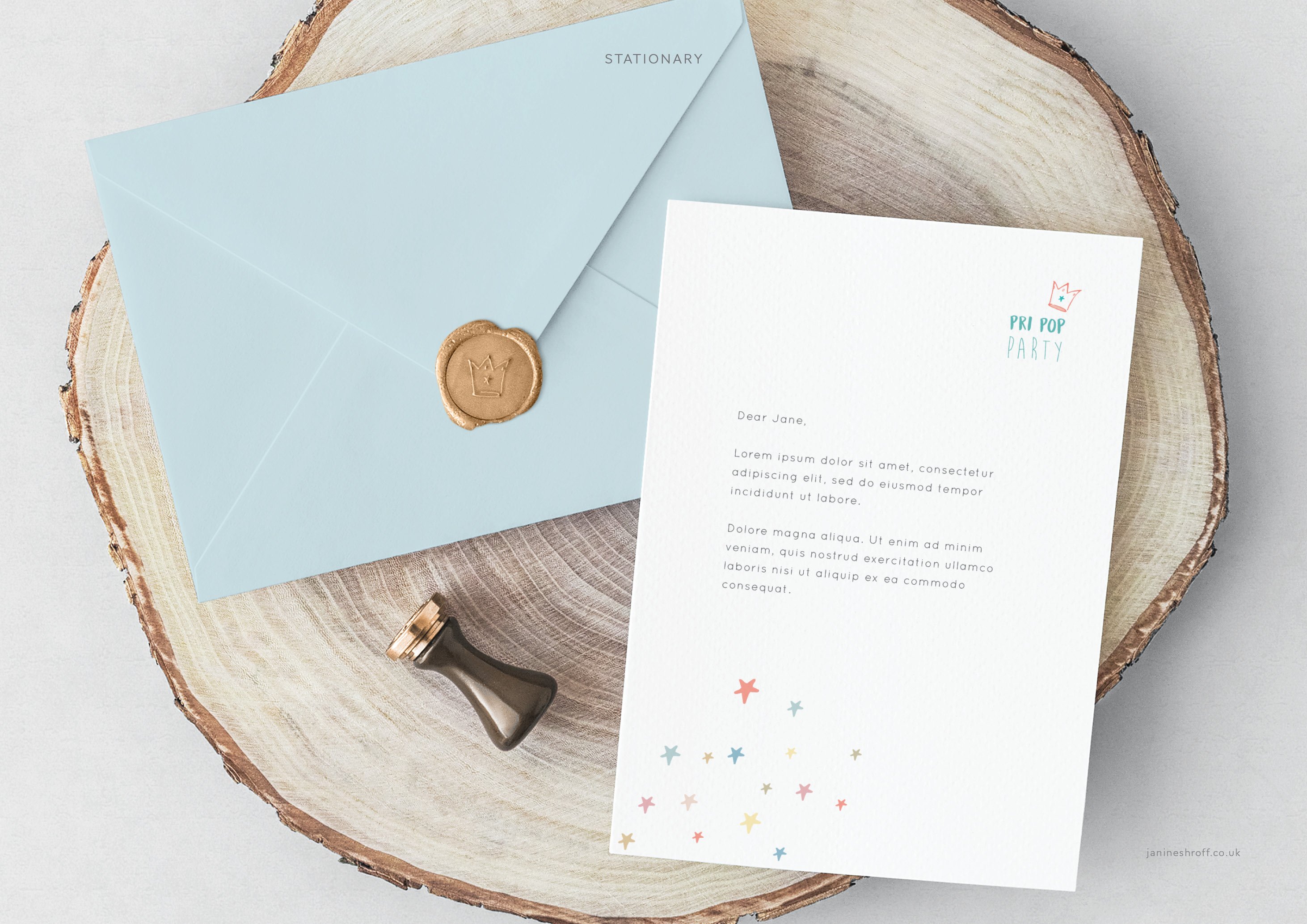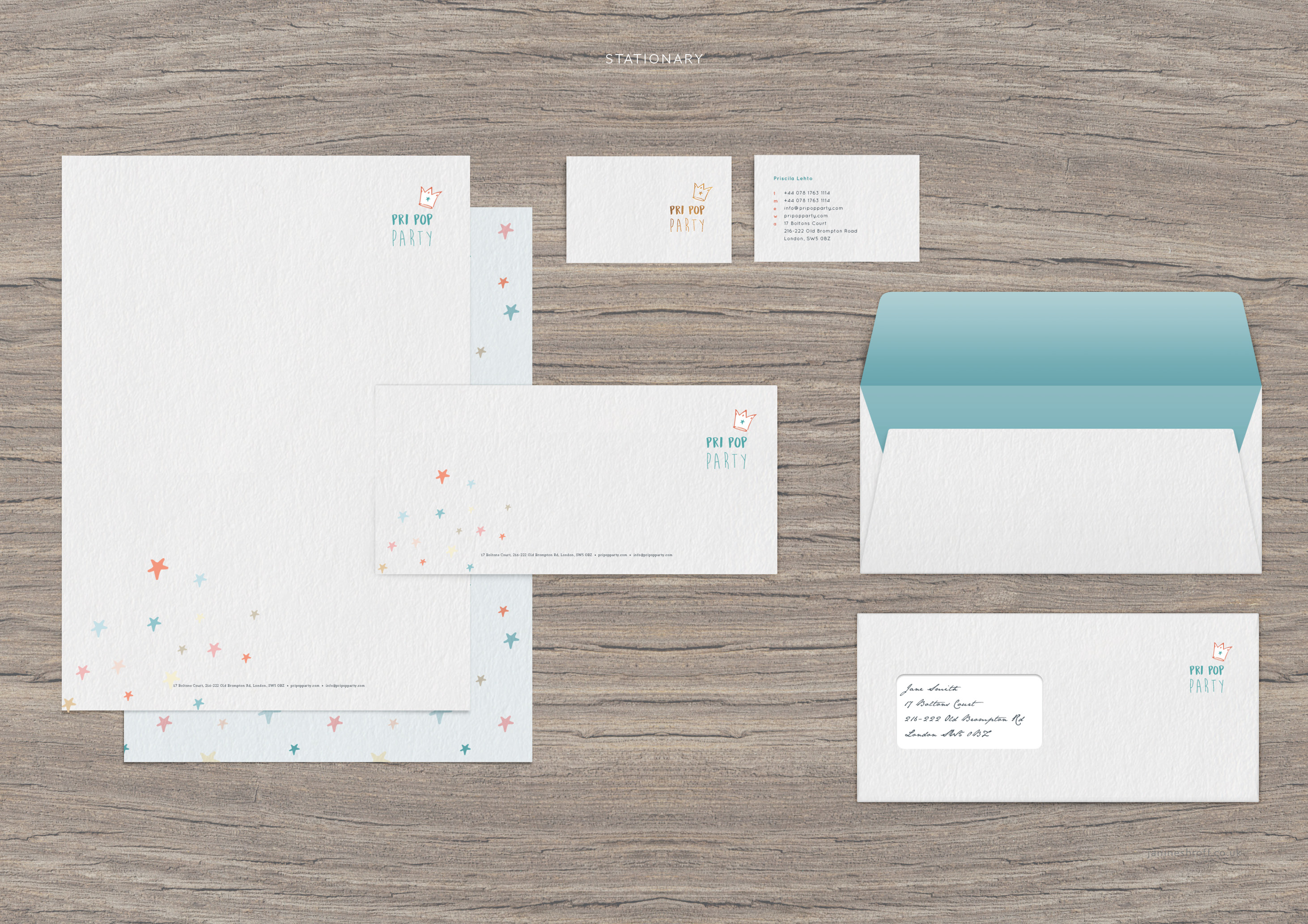 We also created a brand pattern of pastel stars that can be used on packaging, invites or stationery.