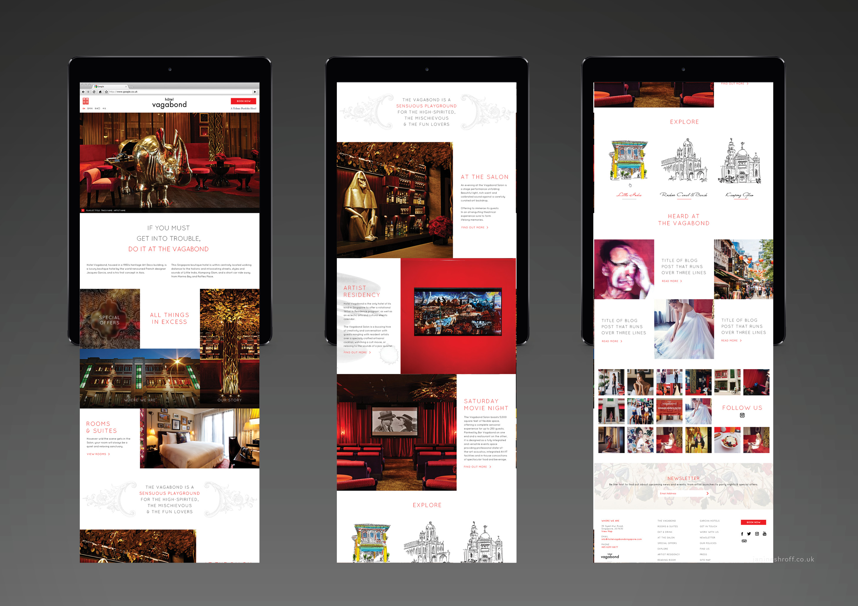 The website UI & UX was designed to reflect the playfulness of interiors of the hotel as well as its decadent aesthetic.